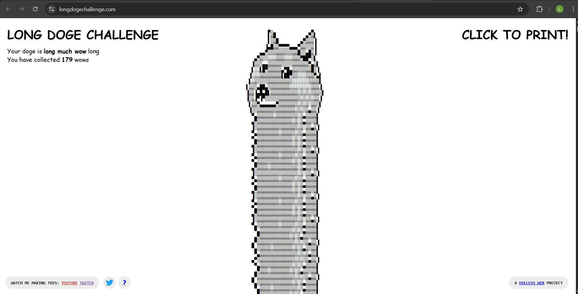 This is the Long Doge Challenge. It is pretty much a useless website, unless you have hours to kill scrolling through an endless Doge. You can also level up the more you scroll, and even earn "wow" points when you scroll pass a "wow" on the screen. Click on the image to start playing.